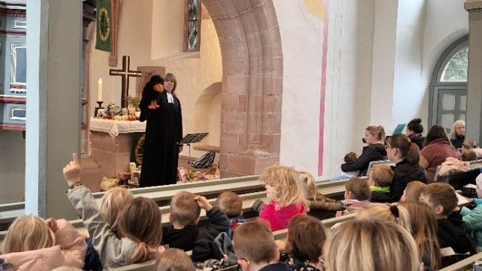 In einer kleinen Andacht mit Frau Schmidt-Wecken die vom Raben Rudi begleitet wurde, haben wir Gott für die Ernte und die vielen Gaben gedankt. Außerdem haben wir über das Thema Teilen gesprochen und den Bezug zu unseren mitgebrachten Spenden hergestellt.