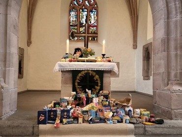 Wie in jedem Jahr haben wir die Familien dazu aufgerufen, Spenden für die Bebraer Tafel mitzubringen. Diese liebevoll gesammelten Gaben haben wir am Donnerstag gemeinsam zur Kirche getragen und dort vor dem Altar abgelegt.