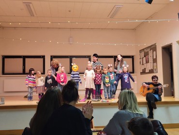 Franziska Deeg und die Kinder der Musikschule präsentierten mit großer Begeisterung die Lieder und Rhythmen, die sie in den vergangenen Wochen geübt hatten. Eltern und Gäste waren sehr berührt und belohnten die Kinder mit viel Applaus. Langsam wurde es draußen dunkel und deshalb machten sich alle auf den Weg zum Waldrand. Vielleicht haben sie ja Glück und würden den Nikolaus treffen. Tatsächlich wartete er bereits und die Kinder begrüßten ihn mit großer Freude. Der Nikolaus begleitete die Kinder in die Kita zurück und verteilte aus seinem großen Sack die Nikolaussäckchen der Kinder, gefüllt mit Leckereien.