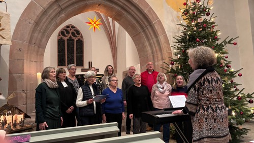 Am Silvesterabend sang der ev. Kirchenchor unter der Leitung von Birgit Heichel im Gottesdienst und berührte die Herzen vieler GottesdienstbesucherInnen. Durch die Lieder wurde Glaubenshoffnung und Vertrauen in Gottes Begleitung verbreitet. So verdichtete sich die Botschaft der Predigt.